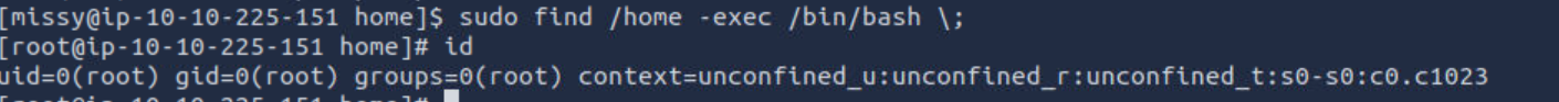 登进去看看,信息收集同上,发现find命令将会以root权限运行