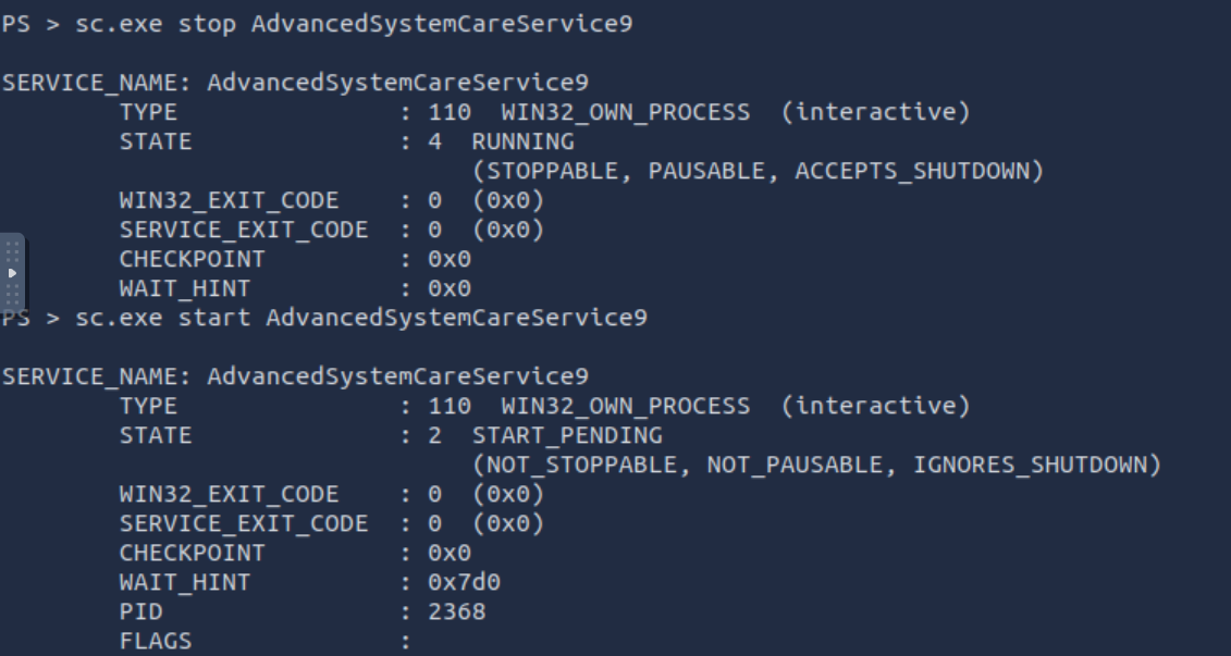 sc.exe start AdvancedSystemCareService9