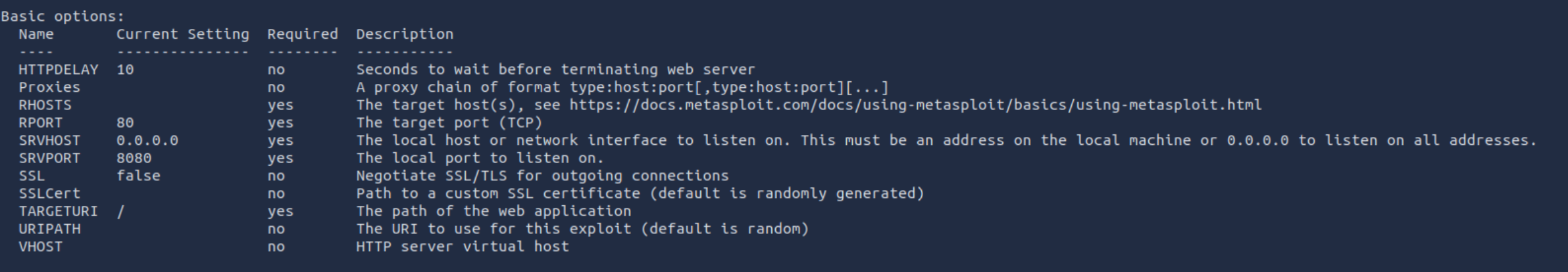 查看一下由于服务在8080端口,所以需要更改RPORT,设置一下RHOSTS即可