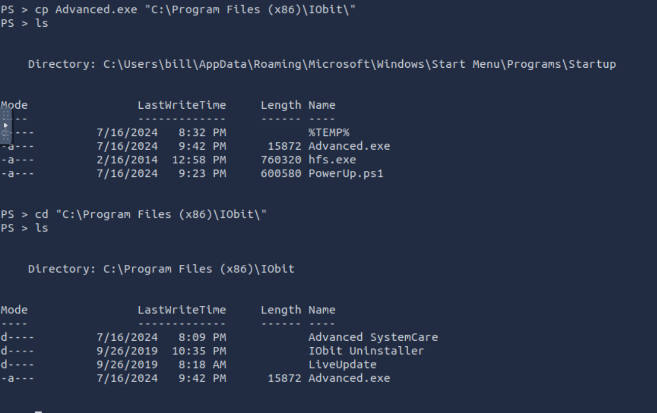 ModifiablePath : @{ModifiablePath=C:\Program Files (x86)\IObit; IdentityReference=STEELMOUNTAIN\bill;
